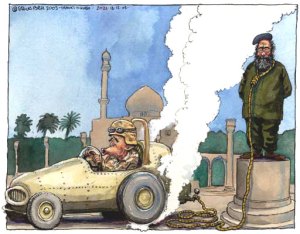 Saddam was certainly a murderous tyrant. He was helped to power by the CIA first in order to destroy the powerful Iraqi Communist Party, and then funded and armed by the US, Europe and the Gulf regimes to attack revolutionary Iran. He poisoned Iranian cities and Kurdish villages (Iraqi Kurdish militias were in alliance with Iran at the time) with gas. After falling into the American trap and invading Kuwait, he dealt with the 1991 intifada in the south and north of Iraq by annihilating whole clans and villages. This is when the sectarian horror really began to take a grip on Iraq. Tanks painted with the slogan ‘No Shia after Today’ moved into southern cities, and provided ample filling for mass graves. The aunt of one of my friends was driven insane when her sons were tortured to death by Saddam’s mukhabarat: just one story from very many. Saddam didn’t only build the worst secret police state in the Middle East, he actually organised rape squads, and special rape rooms, to destroy Iraqi women and Iraqi family honour. His victims number in the hundreds of thousands, and millions if you include the wars he started.