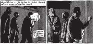 The pictures – aerial shots, action shots, urban still lifes, crafted but realist character studies – work as hard as the words. Sacco depicts fear, humiliation and anger very well indeed, and often achieves far more with one picture than he could in an entire newspaper column. The cranes at work on a Jerusalem skyline are worth a paragraph or two of background. So is the fact that almost every Palestinian male has a cigarette in his mouth. And when dealing with historical process – the changing shape of the camps, for example – the pictures are more than useful.