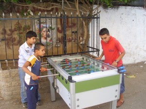 Balata Camp started as tents in the fifties, grew cement blocks in the sixties, installed sewage and water in the seventies, and has stretched ever upwards until now. The camp boasts the densest population in the West Bank: at least 25,000 people in a couple of square kilometres (the inhabitants claim up to 40,000). The buildings are so tightly packed that the kids forced out to play in the shadowed alleyways suffer from Vitamin D deficiency, sun deprivation. There are eight to ten people to a residential room. In school there are 50 children to a class. UNRWA schools and the graveyard take up most space. Most of the graves are those of people killed in the streets of the camp.