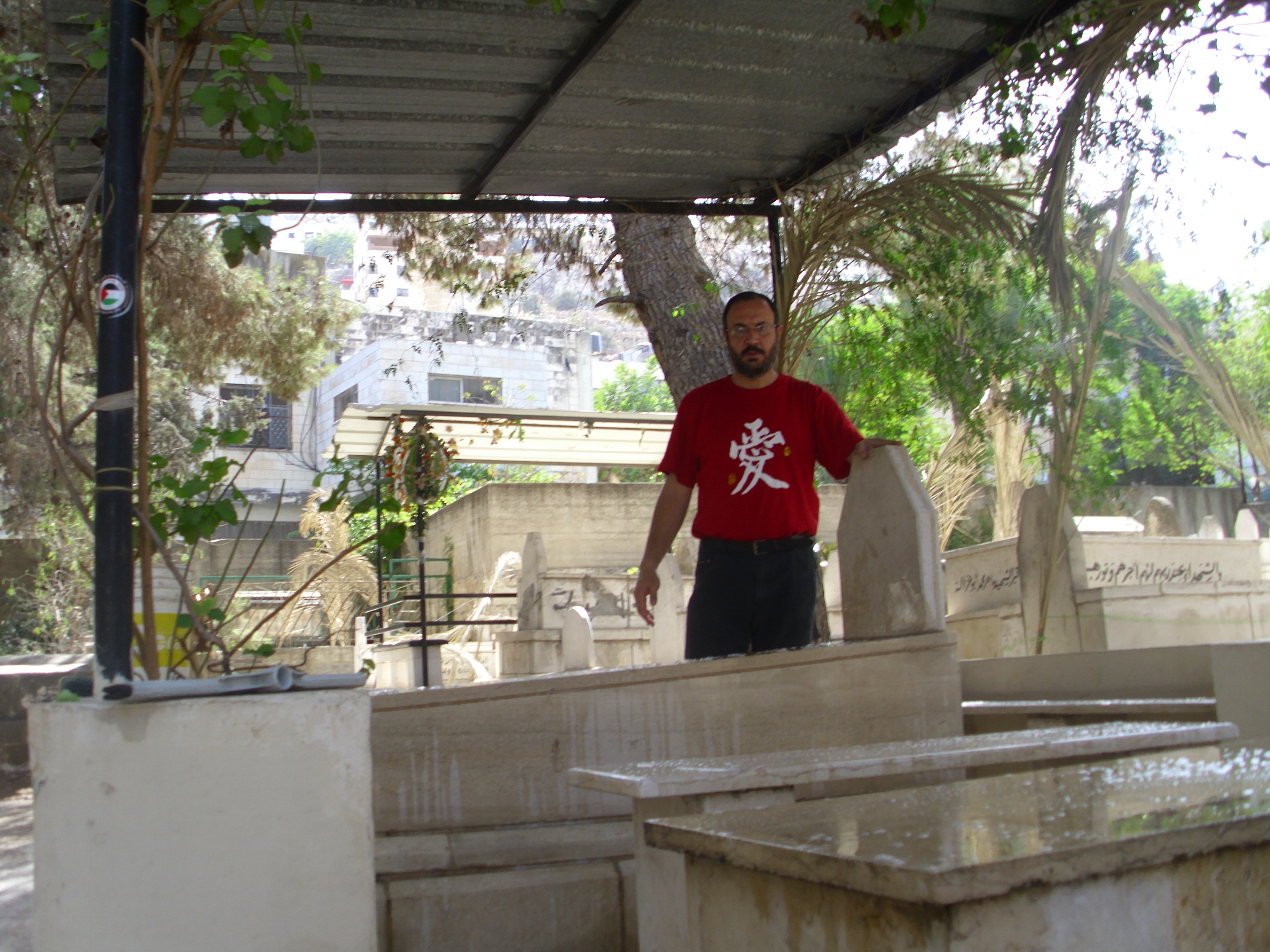 After one Friday’s prayers I visited the grave of a friend’s mother, Shaden al-Saleh. Shaden was a teacher and community organiser, and was executed by Israeli soldiers while embroidering on the step at home. After we’d paid our respects, her son and I brushed the needles from the grave of Jihad al-Alul, shot in the head on the first day of the Second Intifada, ten years ago, aged twenty. He’d been part of an unarmed crowd confronting soldiers at the Hawwara checkpoint which blocks the city’s southern exit. As we swept the needles from Jihad’s memorial we chatted with Abu Fadi, whose two martyred sons are nearby. A warm, mournful man, Abu Fadi has made a garden of their tombs. My friend knows him well, as he knows all the families who visit these graves. He says that when his mother died he became part of the great family of the martyrs.