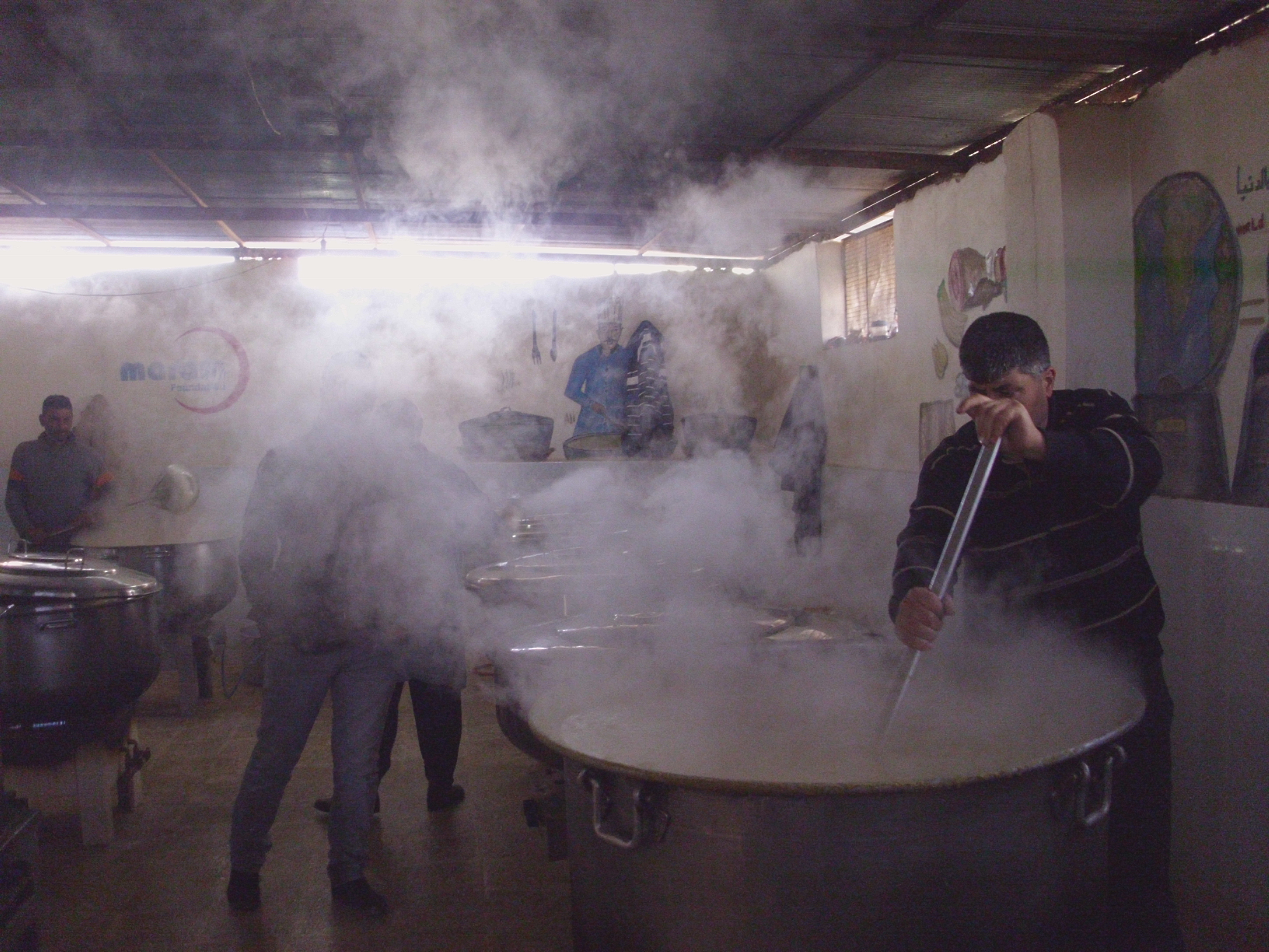 In the camp, the steaming vats of the Maram Foundation’s charity kitchen are cooking the same meal they were cooking six months ago: lentil soup. Children wait for lunch to be distributed with buckets in the red mud outside. Also on main street is a new clinic and one-room dentist (funded by the Syrian-American Medical Society). Dr. Haytham grins as he complains about the conditions. The roof leaks, and the recent snowstorm flooded his crowded space, destroying electrical equipment. As he served us tea, a boy called Mahmoud walked in to observe us, his face marked by post-treatment leshmaniasis scars (a resurgent disease caused by the sand flies which prosper in uncollected rubbish). Mahmoud, about five years old, seemed a pleasant child at first, but after a smiling photograph with one of our group his mood flipped, he violently pinched the hand of the man he’d been cuddling up to, and then took to whipping his older sister with a cable. “Nobody can control him,” somebody remarked. “He doesn’t have a father.”