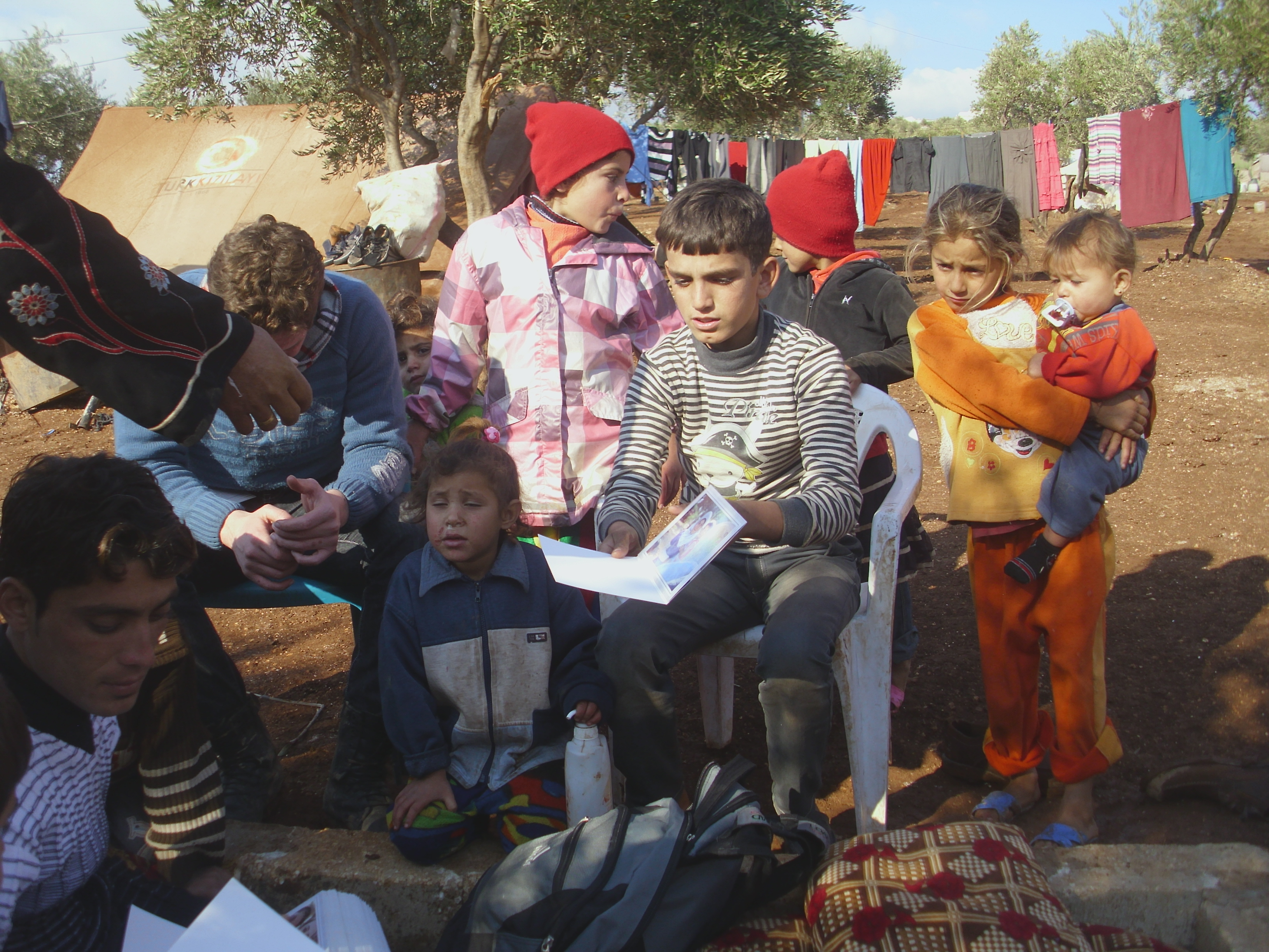 Ahmad used to be headmaster of the Return School, where we’d worked (for the Karam Foundation’s Zeitouna programme) in June. Now (with ominous symbolism) the Return School has gone, replaced by the Wisdom School, where Ahmad teaches, which enjoys breezebock walls and corrugated iron roofing, but the sloping mud floor shifts when it rains. And of course there’s no heating. Ahmad, who last time was confident in the revolution’s imminent victory, tries to look on the bright side. “We do what we can for the kids. That way at least they’ll have benefitted a little from this period, whether the regime falls or not.”