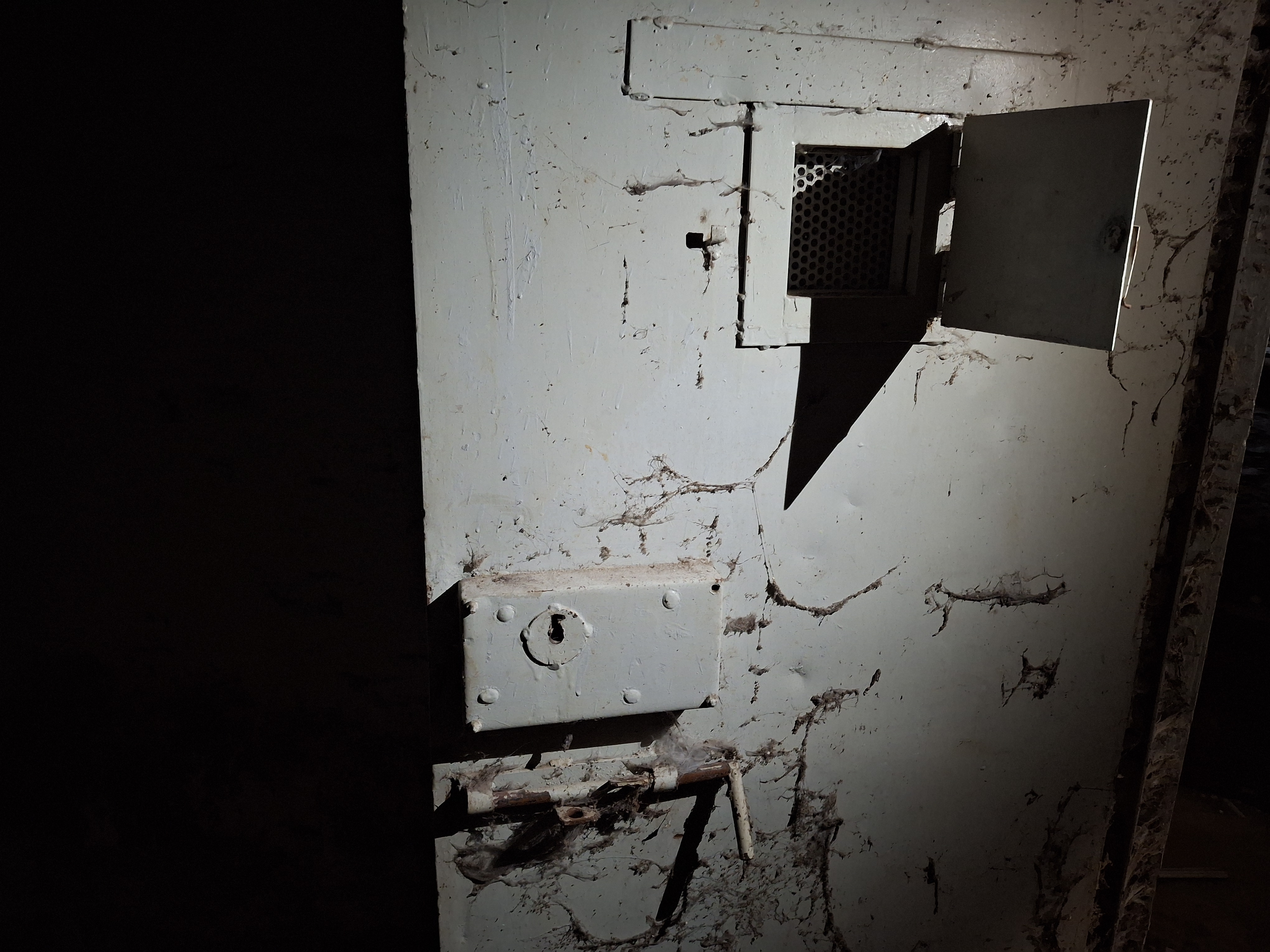 The smell is stronger here. One of the photographers explains that in the first days after the liberation streams of human waste flowed from the cells into the hallway. We’re stepping now on blankets put down to absorb the filth. They have hardened in the dry air in the months since, but the smell persists. This is despite the thick clouds of incense currently being burnt upstairs, where the group cells are. That sweetness covers but doesn’t hide the deeper, more disturbing sweetness of persistent degradation.