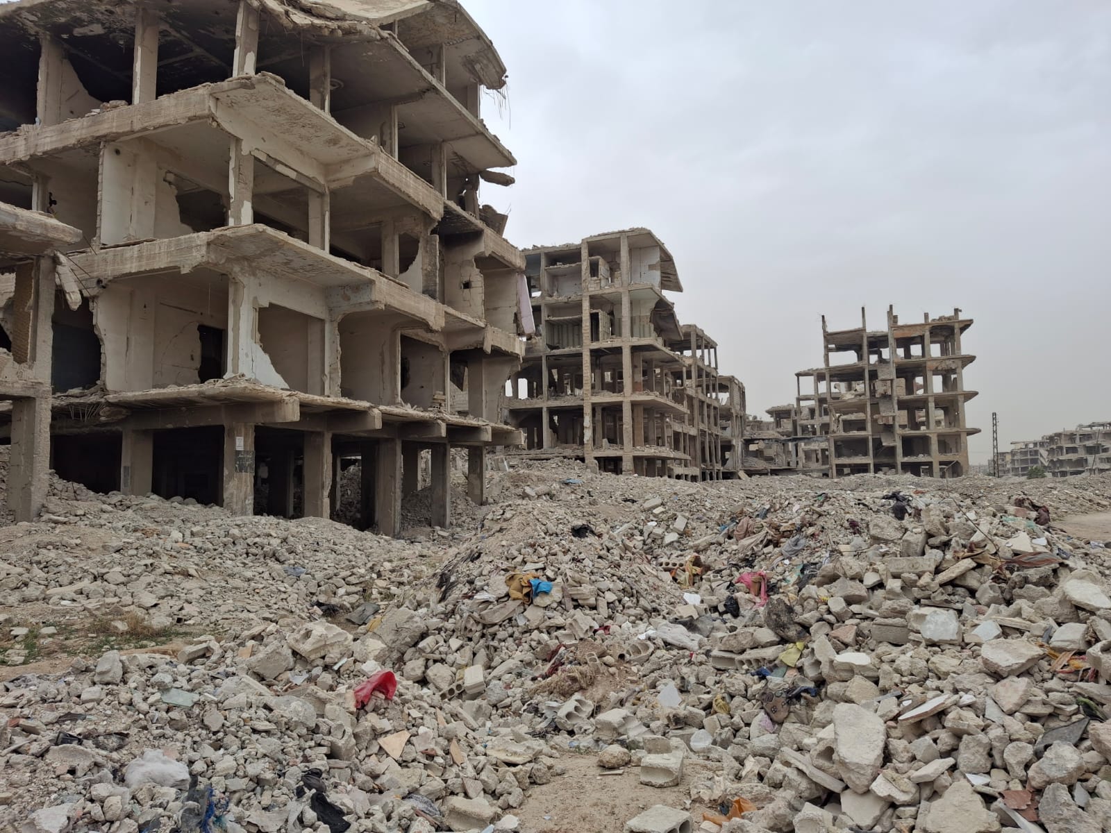 War damage is apparent everywhere in Douma. On another day a friend drove me back to Douma through the suburbs of Jobar, Harasta, and Arbeen. Then we drove back to the city center and through Yarmouk Camp, which once housed the largest Palestinian community in Syria. Twenty five years ago I had friends in Yarmouk, and knew my way around the neighborhood. This time there was nothing to recognize. All of these areas are utterly destroyed, mile after mile. First bombs crumbled the buildings, then regime-organized looters removed the copper pipes, the electrical cables, and the bathroom tiles. It’s a master class in de-development, and another type of crime to be documented, acknowledged, and accounted for.