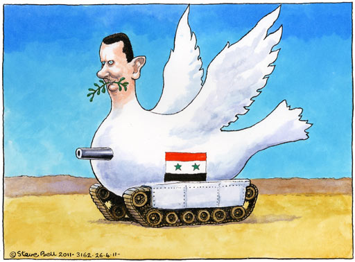To start with, although they were inspired by revolutions in Tunisa and Egypt, most protestors didn’t aim for regime change. The first demonstration – in the commercial heart of Damascus – was a response to police brutality. That one ended peacefully, but when Dera’a protested over the arrest of schoolchildren the regime spilt blood. Outraged, communities all over the country took to the streets, and met greater violence, which swelled the crowds further. A vicious circle began to spin. All the intelligence, and the nationalist pretensions, peeled away from the government to reveal a dark and thuggish core.
